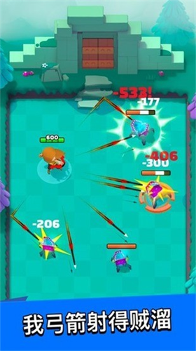 游戏独创的动态成长系统让每场冒险都独具特色。当角色等级提升时,玩家可从「爆头穿透」「攻速强化」「弹射攻击」等特色技能中自由组合。随着冒险深入,玩家将解锁带有冰冻减速、火焰灼烧等特殊效果的箭矢,配合墙壁反弹、斜向射击等战术技巧,打造专属战斗流派。