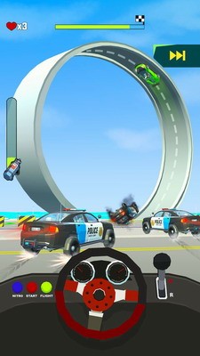 2、特技积分系统:在飞跃断桥时完成空中转体、隧道内墙面行驶等特技动作可获得额外分数加成。
