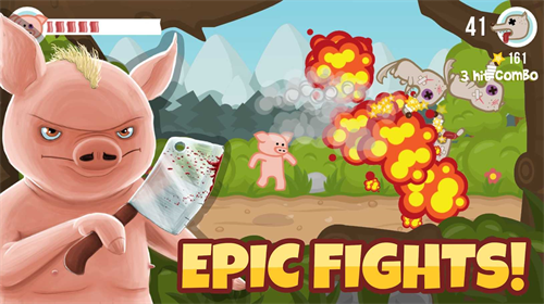 1、冒险任务设计欢快有趣,玩家将见证小猪的高超功夫,并参与不同战斗场景。
