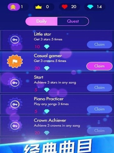 钢琴独奏大师移动端中文版本是一款融合音乐艺术与节奏挑战的精品手游,游戏通过清新唯美的卡通画风构建出沉浸式演奏场景,200余首横跨古典与现代的钢琴名作收录其中。从贝多芬的《月光奏鸣曲》到肖邦的《夜曲》,玩家可在指尖滑动间感受音乐巨匠的创作精髓,实时触发的繁星特效更让每次演奏都充满视觉惊喜。