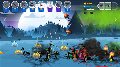 火柴人战争遗产3策略对战版延续经典火柴人题材,采用复古国风场景与极简美术风格打造沉浸式战场。玩家将率领军团参与史诗级攻防战役,通过资源管理、兵种搭配与即时操控实现战略压制。游戏内设30种特色武器与12类进阶兵种,支持自由编队与单兵微操,更有动态天气系统影响战场局势。