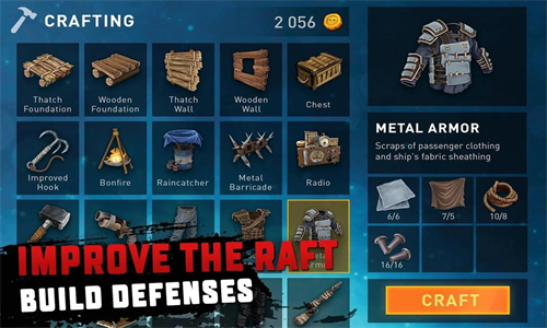 1、动态建造系统:从基础浮板到多层建筑均可自由搭建,每块甲板的承重与吃水深度会实时影响结构稳定性,逼真的物理引擎要求玩家在拓展生存空间时充分考虑配重平衡。独特的蓝图解锁机制让后期可建造瞭望塔、淡水蒸馏器等高级设施。