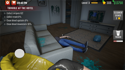 1、专业清洁模拟:面对形态各异的犯罪现场,玩家需灵活使用基础拖把与进阶设备组合。当常规工具无法应对时,可启动户外高压清洗装置快速清除顽固痕迹,搭配多层级除臭系统还原环境原貌。