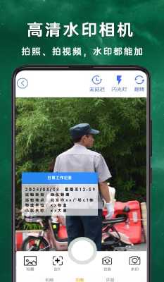 2.多场景适用模式:预设工程监理、考勤打卡、项目进度跟踪等专用模板,同时兼容日常生活拍摄场景