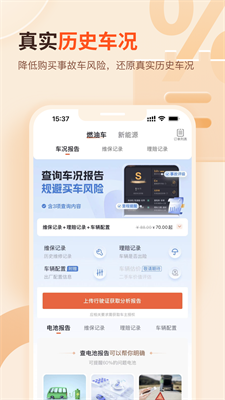 1、全生命周期档案追溯:依托智能算法解析车辆VIN码,可精准识别水浸修复、重大事故维修、里程篡改等关键信息,自动生成多维度的车况评估图谱。