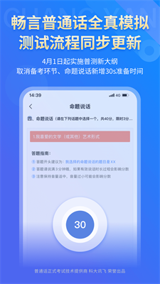1、情景模拟测评:真实还原普通话等级考试场景,通过智能语音识别技术生成三维评分模型,精准定位发音薄弱环节。