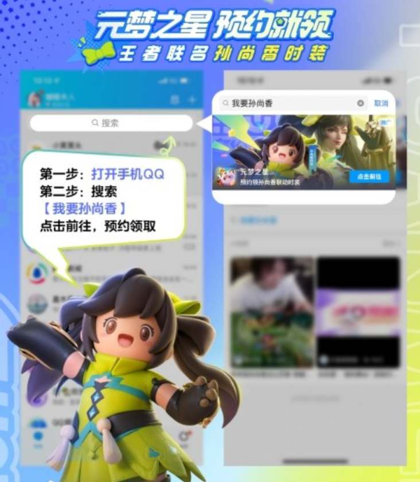 通过手机QQ搜索栏输入「我要孙尚香」关键词,系统将自动跳转至游戏预约界面。完成账号预约登记后,即可锁定「王者荣耀联名孙尚香时装」领取资格。待游戏正式上线后,使用预约时登记的账号登录即可在邮箱查收该时装。