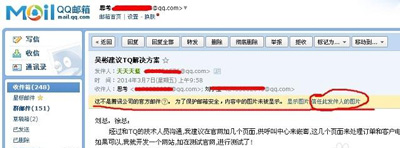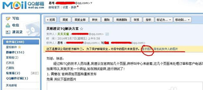 2、进入邮件正文页面后,若发现图片区域呈现空白状态,请注意观察页面顶部提示栏;