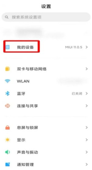 第二步访问硬件信息页面。在设置菜单中向下滚动查找"我的设备"选项,该模块详细记录了处理器型号、存储空间、系统版本等硬件参数,是进行设备维护的基础界面。
