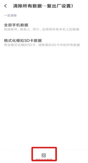 第四步选择初始化选项。点击"恢复出厂设置"按钮,系统将显示存储空间占用情况和格式化警告提示。此操作将清空用户分区所有数据,包括应用程序及其关联文件。