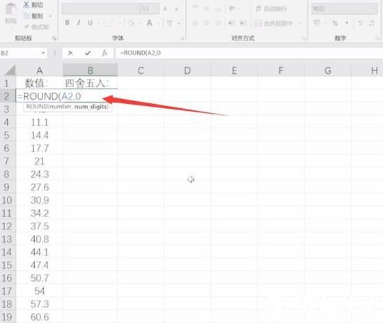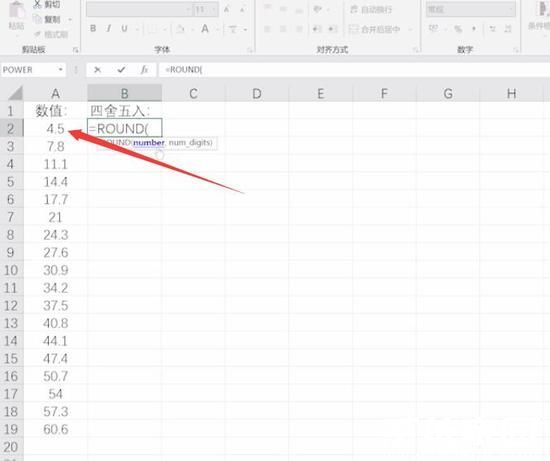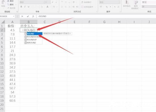 首先在目标单元格输入函数公式=ROUND,通过双击函数提示框完成基础函数调用。需特别注意函数参数的规范性输入: