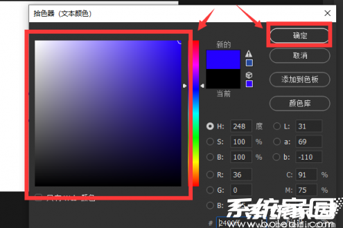 3、在色彩选择面板中,左侧色域区支持多维度的颜色选取操作。用户可通过圆形取色器在色谱中精准定位目标色值,同时右侧参数区支持输入具体色彩编码。选定天蓝色系后,确认色彩选择完成设置。
