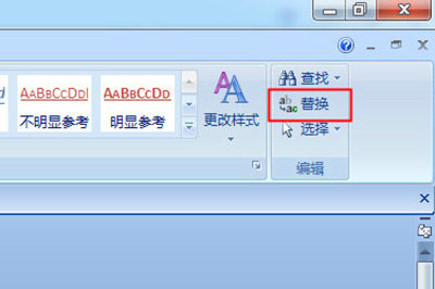 2、定位至顶部菜单栏,选择【开始】选项卡右侧的【替换】功能组(支持快捷键CTRL+H快速调用)