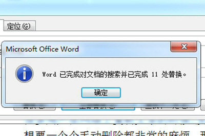 4、点击【全部替换】按钮后,系统将自动完成文档扫描并显示替换统计结果。此时返回文本界面即可查看已清除所有常规空格