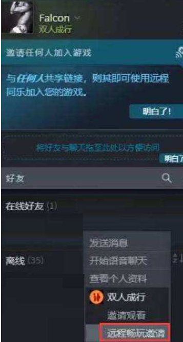 4、进入游戏场景后同时按下shift+tab组合键激活好友列表。在目标好友账号处右键选择远程畅玩邀请,此时系统会自动发送加密连接请求。