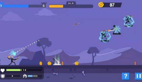 本作作为横版射击佳作,要求玩家精准判断敌方运动轨迹,随着关卡难度升级,对手的移动速度和攻击频率将显著提升。游戏内置动态物理引擎系统,弓箭飞行轨迹会受到重力与风速影响,建议通过训练场反复调整射击角度。成就系统包含132个挑战项目,完成特定成就可解锁稀有皮肤与传说级装备。