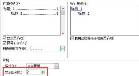 2、在目录设置界面,需重点调整显示级别参数。该数值决定目录包含的标题层级,建议设置为比实际使用层级多1级,例如文档使用到三级标题时,显示级别建议设置为4级,为后续内容调整预留空间。