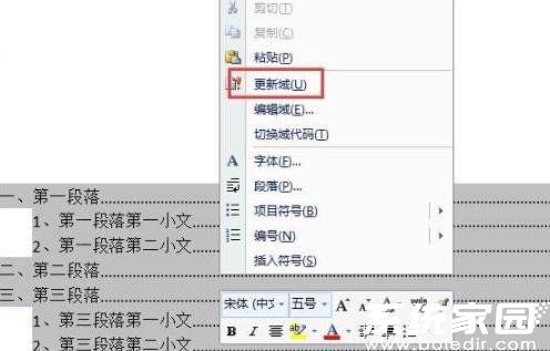 4、文档内容变更后,右键单击目录区域选择「更新域」功能时,会出现两种选项:「只更新页码」和「更新整个目录」。前者适用于仅调整内容顺序不修改标题的情况,后者则会同步所有标题文字和页码信息。