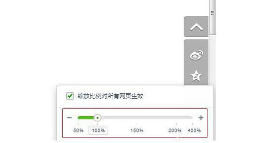 2. 多数浏览器会在界面右下角显示缩放控制组件,通过点击放大按钮或拖动滑块至100%位置,可快速修正显示比例
