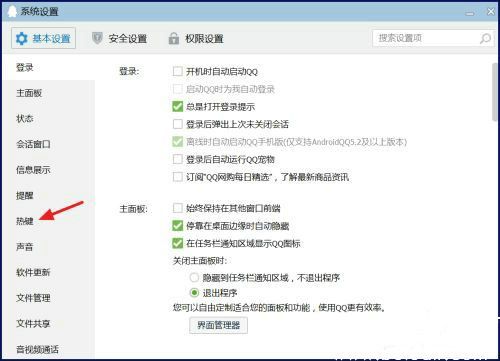 2、在参数设置面板左侧导航栏选择【热键】模块,该板块集中管理所有快捷操作配置