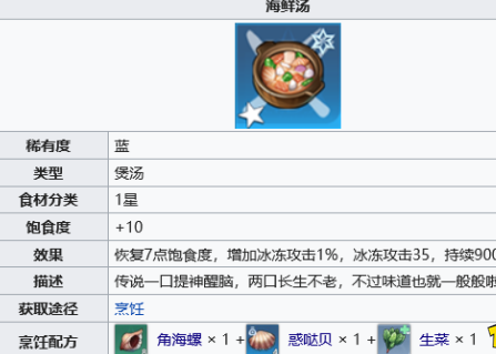 幻塔海鲜汤配方如何获得?游戏中的海鲜汤道具具备恢复7点饱食度特性,同时附加提升1%冰冻攻击与35点冰伤增幅效果,持续时间可达15分钟。这款料理在探索冰属性区域时具有战略价值,本文将详细解析配方获取途径与制作要领。
