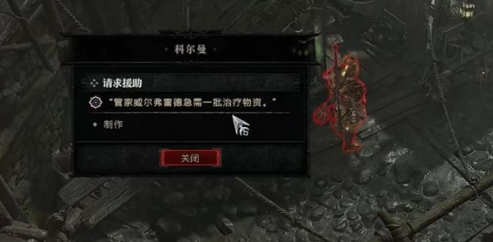 2、在哨所废墟中央位置找到身着破损铠甲的管家威尔弗雷德,与其进行深度交互可触发三段式对话选项。重点选择"关于物资补给"与"炼金术师情报"两个关键对话分支,这将完整激活后续任务链条。
