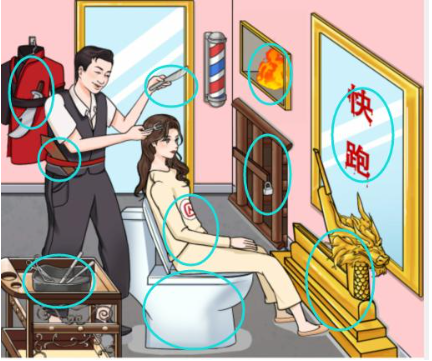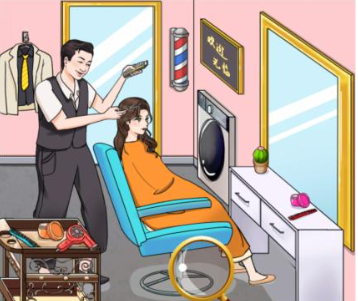 1、进入关卡后首要任务是启动场景扫描功能。点击界面右下方放大镜图标,对理发店进行全面检测。需重点检查价目表字体模糊处、座椅底部隐藏条款、镜面反光异常区域,这些位置可能暗含附加收费项目。