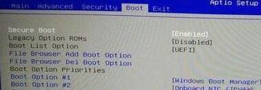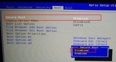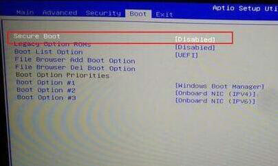 3.选中Secure Boot安全启动项,切换原始状态为Disabled