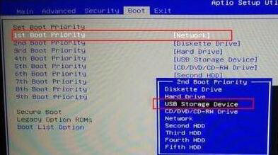 5.在Boot Priority序列中将USB Storage Device设为第一启动介质