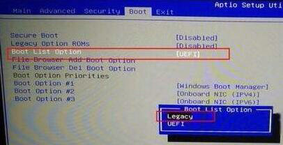 4.修改Secure Boot List Option参数为Legacy模式,解除UEFI限制