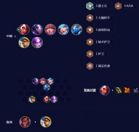 【核心羁绊组合】4爵士乐+3KDA+3超级粉丝