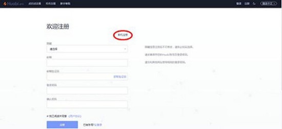 2.选择移动端验证方式进入注册界面。需注意部分平台会区分手机注册与邮箱注册通道,建议优先选择实名手机完成绑定。