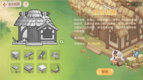当材料收集度达到100%时,不仅能解锁限定房型【稻草小屋】,还可获得配套的田园主题家具套装。建筑成品支持自由视角调整,玩家可360度查看建造细节,后期还能通过染色系统改变屋顶色调。