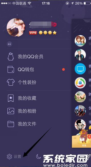 1、启动手机QQ客户端并完成账号登录,在消息界面右滑屏幕进入个人中心面板,点击底部齿轮状设置按钮进入系统设置模块