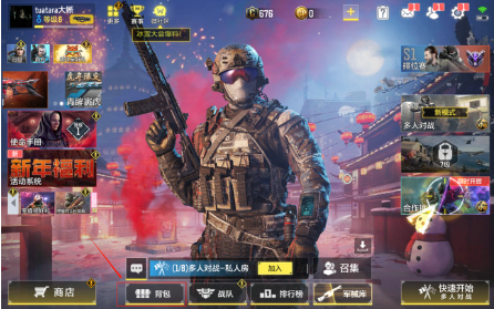 1、启动游戏客户端后,首先进入主界面底部的装备管理模块。该入口通常位于屏幕右下角位置,图标呈现为军事背包样式。