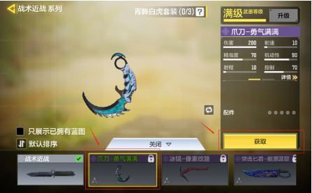 4、在蓝图展示界面中,通过横向滑动浏览功能查看当前可获取的武器蓝图。2022年版本爪刀通常标注有「限定」或「典藏」标识,建议仔细查看每个蓝图的属性说明。