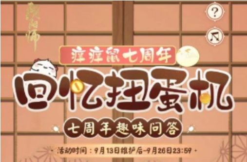 本次开放的「回忆扭蛋机」活动作为七周年特别企划,自9月13日维护后持续至9月26日23:59。玩家可通过专属页面参与趣味知识问答,活动期间完成指定条件即可获得包括式神碎片、召唤符咒在内的多重游戏福利。