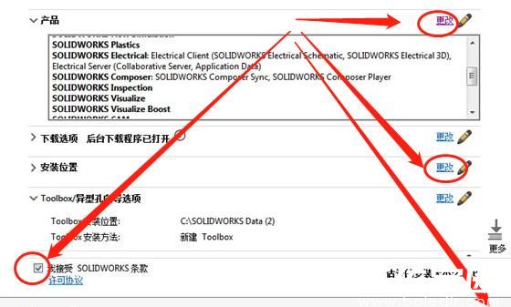 5、设置安装路径时需预留足够存储空间,建议单独划分分区存放工程文件。组件选择页面要注意勾选SolidWorks API开发接口和实时渲染引擎等核心组件。