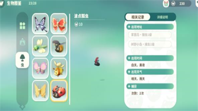 该物种主要栖息于植被茂密的区域,玩家需达到捕虫等级1级后方可进行交互。建议优先提升角色等级并装备基础捕虫网,这将直接影响捕捉成功率。值得注意的是,不同地形区域的瓢虫存在体态差异,但基础捕捉方式保持一致。