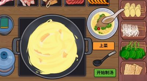 4. 高汤调配需精准控制水位线,蓝色容器每次倾斜角度保持45度可触发完美注水动画,直接影响汤底浓郁度数值